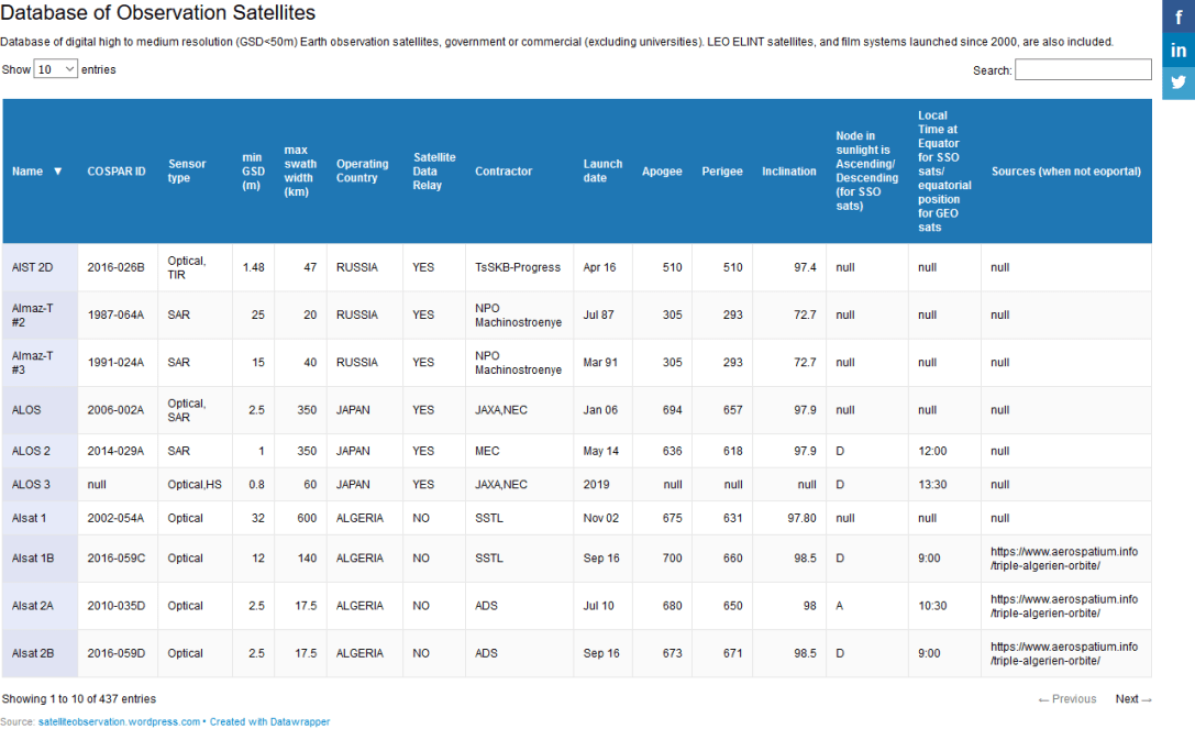A database of observation satellites